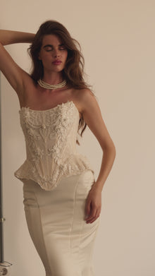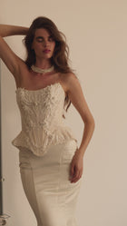 Statuesque, floor-length fitted skirt crafted from smooth satin that holds its mermaid shape. Designed in a fitted silhouette, it gently hugs the hips before flowing into a soft, dramatic flare. Pairs perfectly with the Frida corset - or any other bridal top - for a regal, statement-making bridal look.